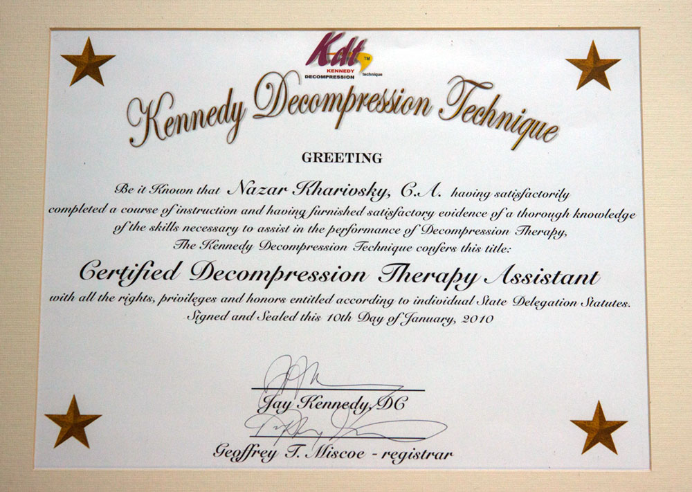 Сертифікат з декомпресії (дистракції) хребта методом Кеннеді.